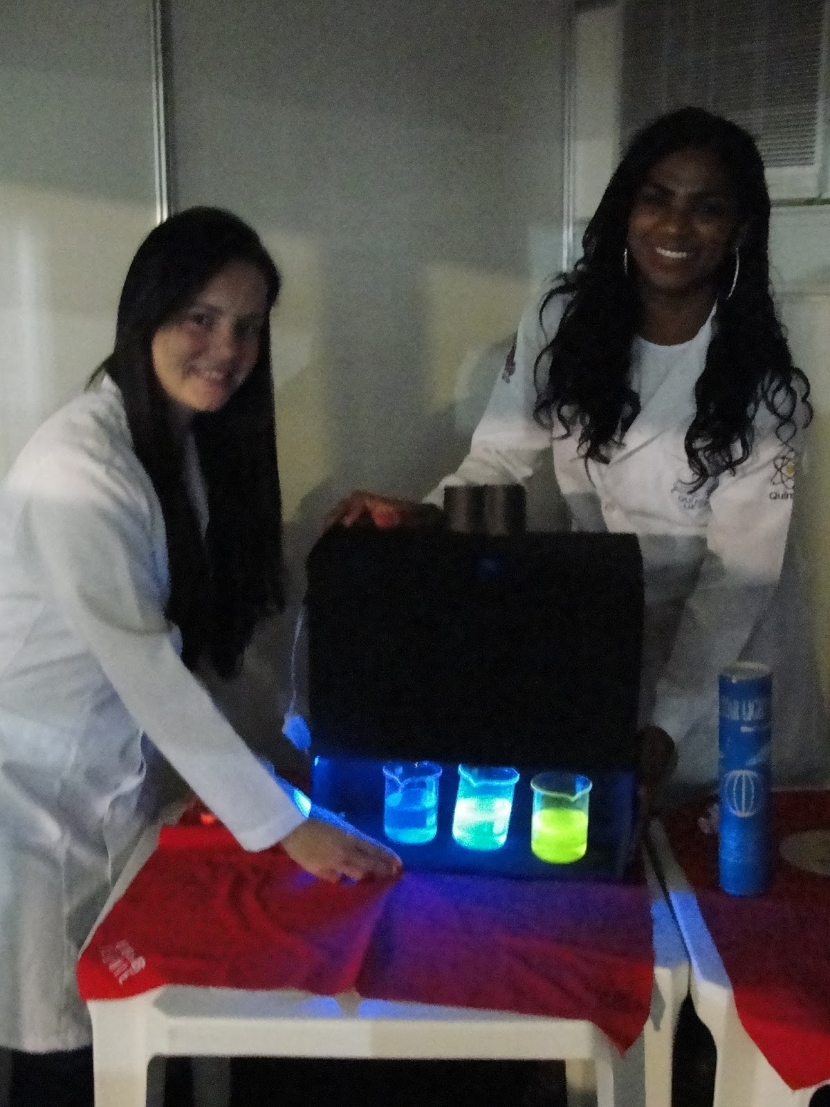 Os monitores apresentaram experimentos que chamavam a atenção de quem passava pela área dos stands. Tivemos a participação de pessoas de todas as idades e as crianças se encantaram com as demonstrações que envolviam pequenas explosões e o fenômeno da luminescência.